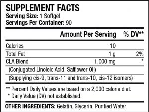 CLA 3K is made with only pharmaceutical grade safflower oil, and it is concentrated for the bio-active CLA isomers responsible for the CLA’s metabolic activity; the cis-9, trans-11 and trans-10, cis-12 isomers. It is these specific isomers that have been shown to be clinically relevant for enhancing body composition by improving lean muscle and cutting fat.