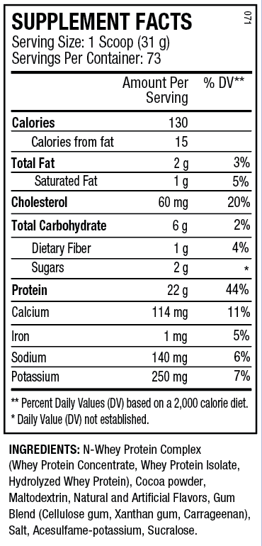Each scoop of N-WHEY delivers 22 grams of muscle-building protein, mixes instantly and tastes incredible with only 130 calories!